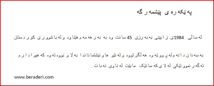 Herzlich willkommen auf meine Hompage. Ich habe auf diese Präsenz hier einige Werke meines Schaffens ausgestellt. Ich lade Sie herzlich dazu ein, diese zu besichtigen. Neben den Bildern der Werke finden Sie in kurdischer Sprache einige Informationen sowie Kommentare dazu. Falls Sie weitere Informationen über die Werke und meine Person wünschen, so können Sie sich jederzeit mit mir in Verbindung setzen. Viel Vergnügen beim Betrachten der Werke wünscht Ihnen